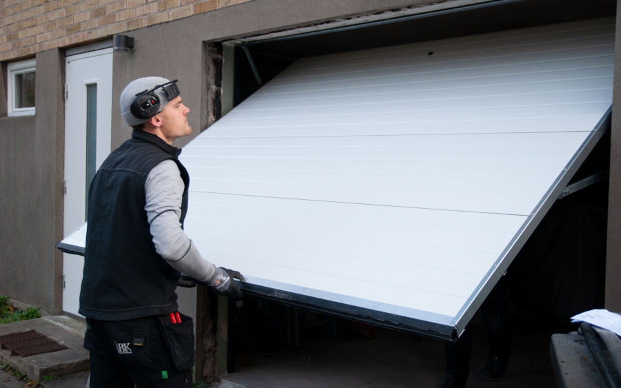 – Dörrarna och garageportarna från Dieden-Ekodoor väldigt enkla att sätta in. Det är bara att sätta karmen rakt så passar dem, berättar Mathias Nilsson, snickare på ABK. En del dörrar får man justera och justera, men de här är bara att montera.