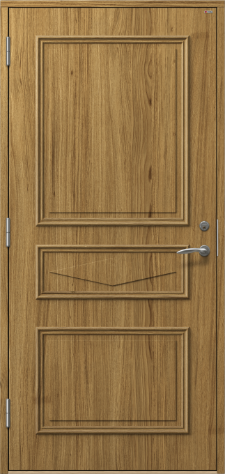 Delsbo 7800 har dekorplattor på utsidan. Finns i ek, teak och furu samt valfri NCS-kulör.