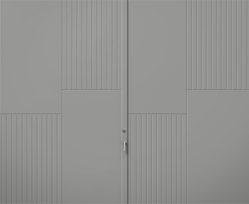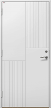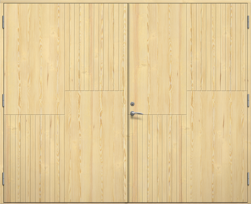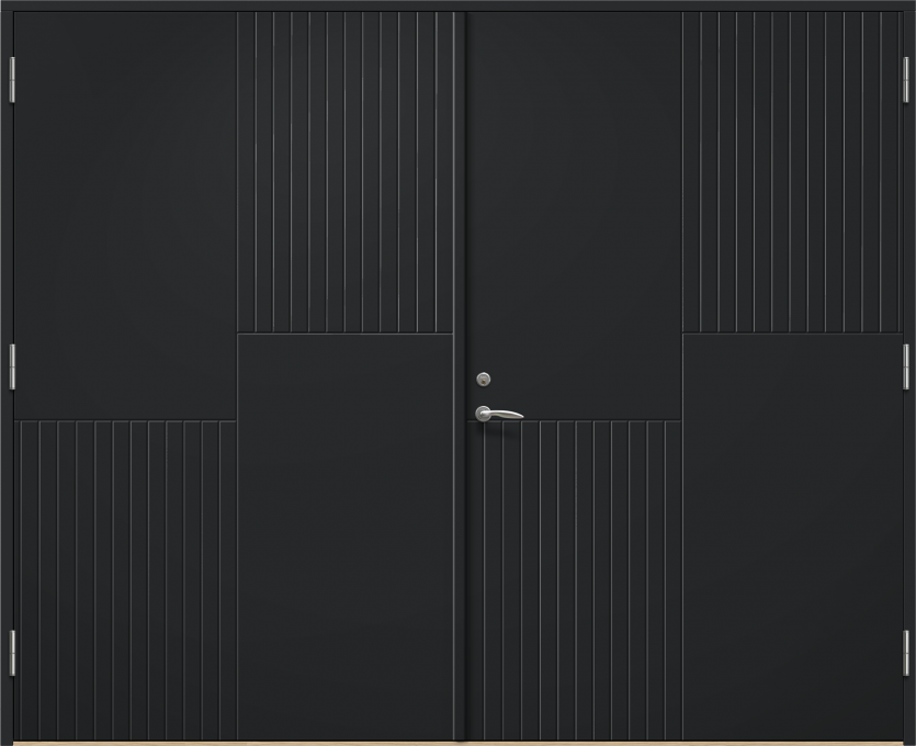 Hylta P9700 har en fint spårfräst yta. Den finns både som vipp- och slagport. Ytterdörr finns i samma design och material.