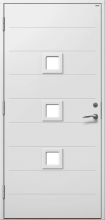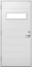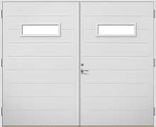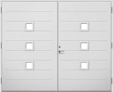 Lomma P1617 är en garageport med spårad fin yta och med fönster. Den finns både som vipp- och slagport. Ytterdörr finns i samma design och material.