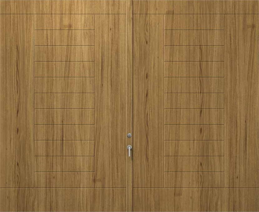 Lund P1700 är en garageport med spårad fin yta. Den finns både som vipp- och slagport. Ytterdörr finns i samma design och material.