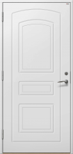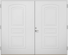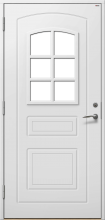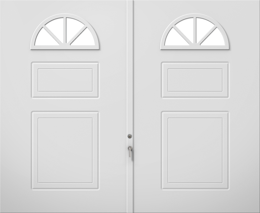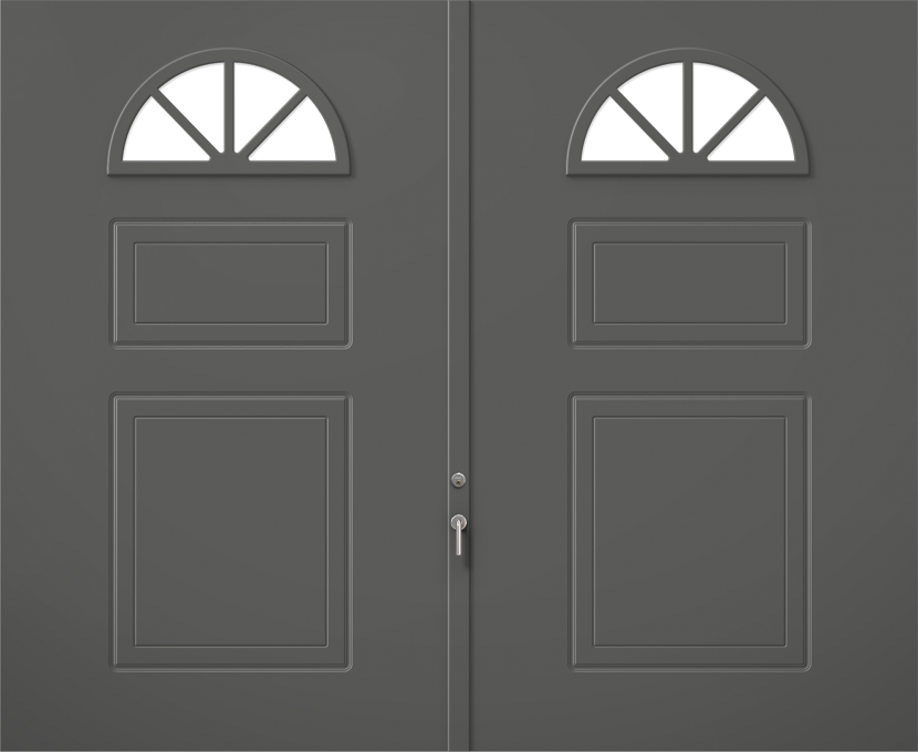 Malung P2510 är en garageport med spårad yta och halvmåneformat fönster med spröjs. Den finns både som vipp- och slagport. Ytterdörr finns i samma design och material.