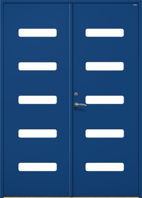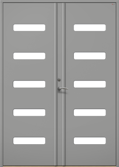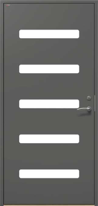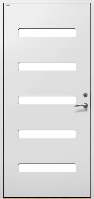 Ytterdörr i slät design, med dolda gångjärn och utsida utan utanpåliggande glaslist