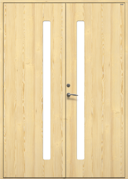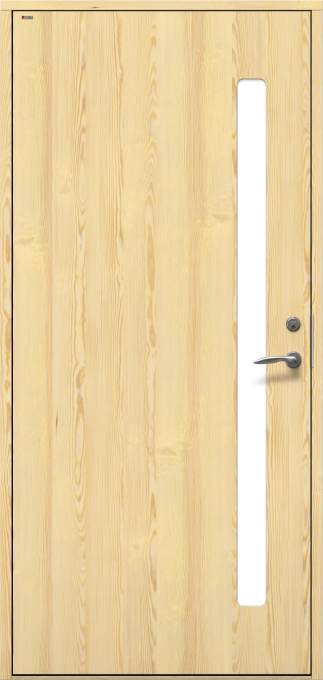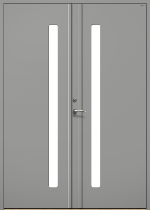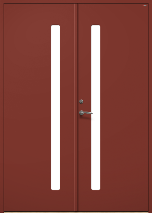 Ytterdörr i slät design, med dolda gångjärn och utsida utan utanpåliggande glaslist.