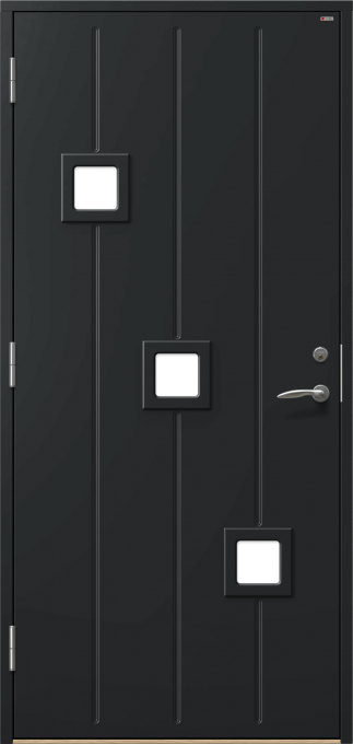 Ytterdörr med spårad utsida. Finns i vit och valfri NCS-kulör samt ek, teak och furu. Välj vilken glastyp du vill ha.