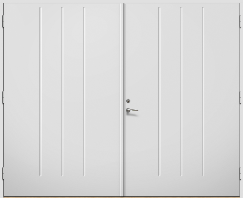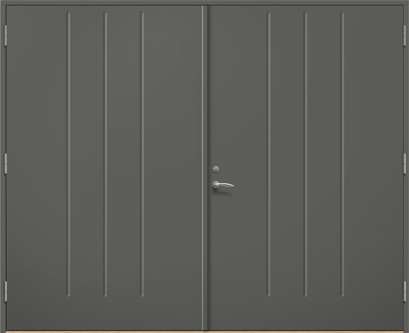 Nacka P1300 är en garageport med spårad fin yta. Den finns både som vipp- och slagport. Ytterdörr finns i samma design och material.