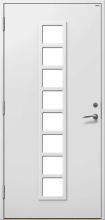 Ytterdörr med slät utsida och insida. Finns i vit och valfri NCS-kulör samt ek, teak och furu. Välj vilken glastyp du vill ha.