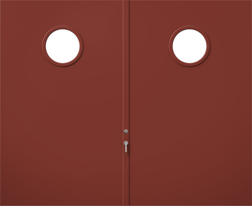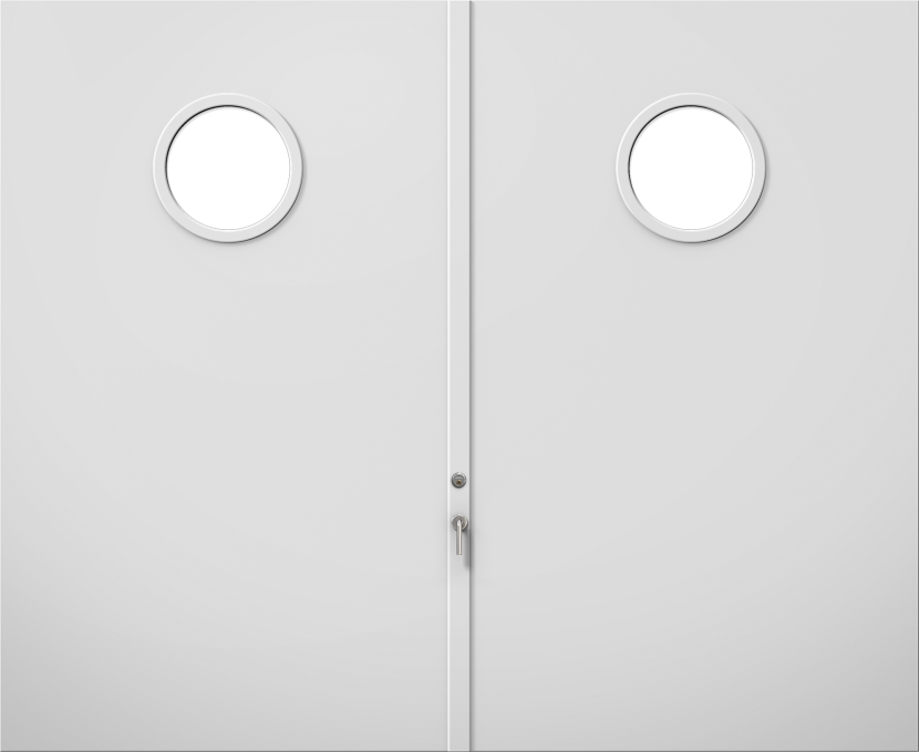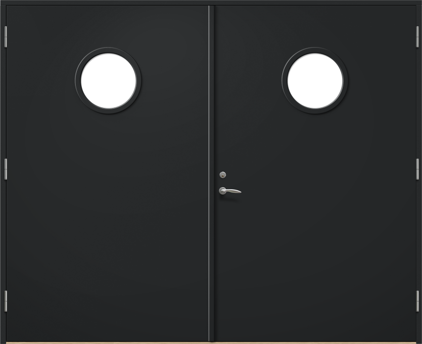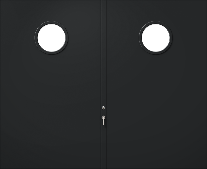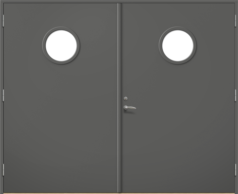 Oslo P10C1 är en garageport med slät fin yta och med runda fönster. Den finns både som vipp- och slagport.