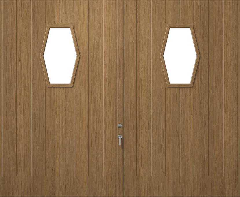 Retro P18Q1 garageport har profilerad utsida och insida och med fönster. Finns i vit och valfri NCS-kulör samt ek, mahognyröd och ebenholtssvart. Tänk på att mahognyröd och ebenholtssvart är i tillverkad i gabon som inte ger samma träkänsla. Den finns både som vipp- och slagport. Ytterdörr finns i samma design och material.