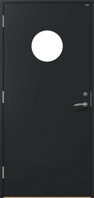 Extra tålig ytterdörr med yta av kompaktlaminat som står emot hårt väder, t.ex. vid kusten. Slät design med utsida utan utanpåliggande glaslist.