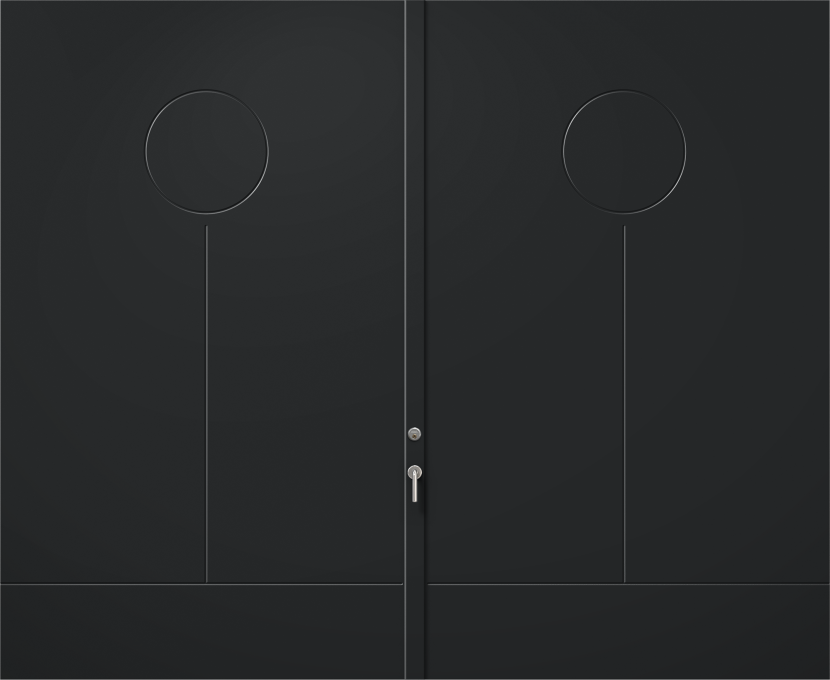 Varberg P1200 är en garageport med spårad fin linje. Den finns både som vipp- och slagport. Ytterdörr finns i samma design och material.